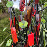 Fragile Tree, Fragile Future is an environmental statement piece. One of the consequences of climate change is an increased risk of bush fires, as seen all over the world in 2019/2020. Trees, the lungs of the planet, are under attack from many fronts. This glass sculpture is a memorial to all trees ravaged by fire. The fiery red trunk represents the burning tree, and the green flowers, hope and new growth.