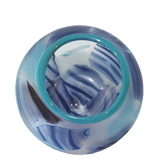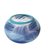 Each of these bowls has a unique colour pattern on the outside. Some have hand-pulled canes in the turquoise colour pallet, others have shell tiles in neutral orange and blues. These bowls are matt-finished using our innovative sandblast process which was developed by Lynden and his team.