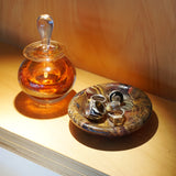 An original piece of glass art. Excellently suited as perfume bottle or interior design accent. Handblown in the Lava Glass Studio in Taupo, New Zealand. Each piece is signed and dated by the artist.