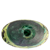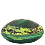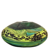 This piece is part of Lynden's signature range, the 'Volcanic Series', that explores the dramatic geological landscape of New Zealand. Lynden uses a layering technique where trails of liquid glass are controlled to create coloured landscapes. Each piece is a unique work of art, signed and dated by Lynden Over.