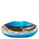 This piece is part of Lynden's signature range, the 'Volcanic Series', that explores the dramatic geological landscape of New Zealand. Lynden uses a layering technique where trails of liquid glass are controlled to create coloured landscapes.Â