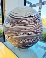 The innovative process involved in creating these unique works requires Lynden to push traditional cane work beyond its historic boundaries. The process starts with creating many coloured canes of glass, picking them up in a vertical pattern, and finally twisting and massaging the glass until the lines turn into organic, horizontal patterns.