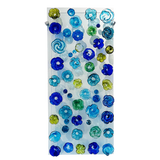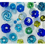 This wall art piece consists of a 5mm thick transparent safety glass panel and a variety of individually blown flowers that are safely glued to the glass panel.