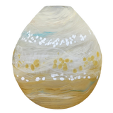 This piece is part of Lynden's signature range, the 'Volcanic Series', that explores the dramatic geological landscape of New Zealand. Lynden uses a layering technique where trails of liquid glass are controlled to create coloured landscapes.
