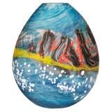 This piece is part of Lynden's signature range, the 'Volcanic Series', that explores the dramatic geological landscape of New Zealand. Lynden uses a layering technique where trails of liquid glass are controlled to create coloured landscapes.