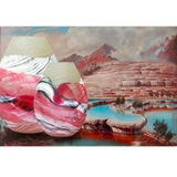 This piece is part of Lynden's signature range, the 'Volcanic Series', that explores the dramatic geological landscape of New Zealand. Lynden uses a layering technique where trails of liquid glass are controlled to create coloured landscapes.