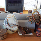 Every single piece of glass art is made in the Lava Glass studio in Taupo, New Zealand. Lynden Over is the award-winning New Zealand glass artist behind Lava Glass. His style is striking and unusual. His inspiration comes from the distinctive and dramatic New Zealand landscape; its geology and its light. The work itself awakening our senses. All glass works are signed and dated by the artist.