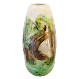 This vase is a one-of-a-kind, handcrafted masterpiece which embodies Lynden's and Christine's stories about the environment. Handblown by award-winning glass artist Lynden Over in his Lava Glass Studio in Taupo, New Zealand. Signed and dated by the artist.
