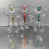 Mr Robot. Cute freestanding art glass figurine. Face and buttons made from dichroic glass.