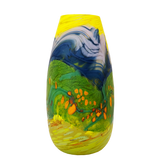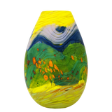 This piece is part of Lynden's signature range, the 'Volcanic Series', that explores the dramatic geological landscape of New Zealand. Lynden uses a layering technique where trails of liquid glass are controlled to create coloured landscapes.