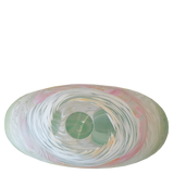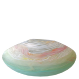This piece is part of Lynden's signature range, the 'Volcanic Series', that explores the dramatic geological landscape of New Zealand. Lynden uses a layering technique where trails of liquid glass are controlled to create coloured landscapes.