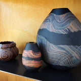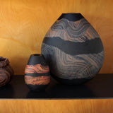 Obsidian River Stone. Inspired by the earth's layers. Combines a deep matt black with seams of muddy ochre, as you would see in a lava flow. Lava Glass is named after the natural volcanic black glass material - obsidian.