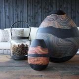 Obsidian Teardrop Medium. Inspired by the earth's layers. Combines a deep matt black with seams of muddy ochre, as you would see in a lava flow. Lava Glass is named after the natural volcanic black glass material - obsidian.