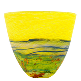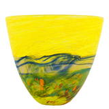 This piece is part of Lynden's signature range, the 'Volcanic Series', that explores the dramatic geological landscape of New Zealand. Lynden uses a layering technique where trails of liquid glass are controlled to create coloured landscapes.