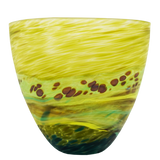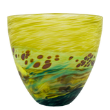 This piece is part of Lynden's signature range, the 'Volcanic Series', that explores the dramatic geological landscape of New Zealand. Lynden uses a layering technique where trails of liquid glass are controlled to create coloured landscapes.