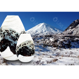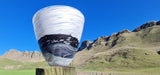Winter Volcanic Bowl. Inspired by the crisp clean white snowy mountains contrasted with the raggedy black rocks sitting motionless amongst the snow.
