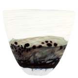 This piece is part of Lynden's signature range, the 'Volcanic Series', that explores the dramatic geological landscape of New Zealand. Lynden uses a layering technique where trails of liquid glass are controlled to create coloured landscapes.