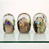 A one-of-a-kind masterpiece, this paperweight is a striking visual focal point and a testament to the art of hot glass. For additional images or further information, please email admin@lavaglass.nz.